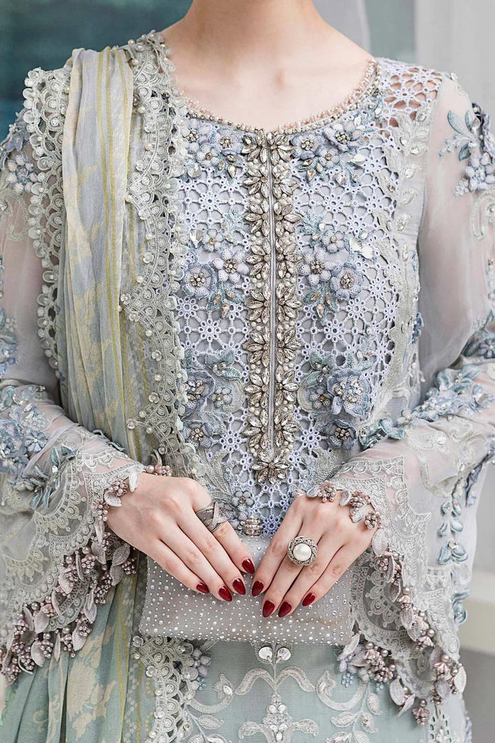 - Embroidered Chiffon Sleeves With 3D Flowers & Hand Embellishment